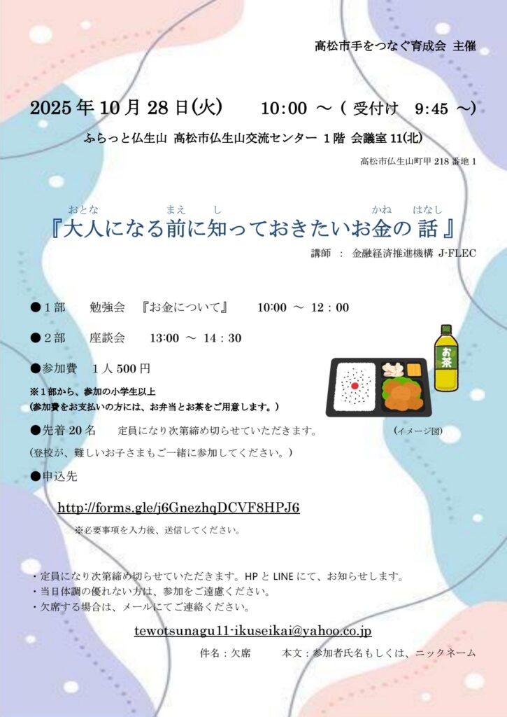 1部では、金融経済推進機構 J-FLEC様をお招きし、「障がいがある子どもにも分かりやすいお金について」の講座を行います。お子さんと一緒に学べる内容ですので、ご家族での参加も歓迎です。