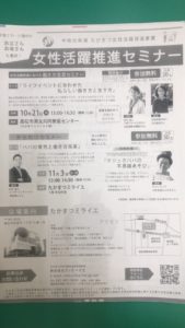 Home › お知らせ › 女性活躍推進セミナー🎶 2019-10-18 女性活躍推進セミナー🎶 2つとも開催場所が たかまつミライエであるようです。 関連記事 県育成会からのお知らせです😁 こんばんは✨ 暑すぎる☀️😵💦 ご案内😊 手紙を発送しました いよいよ二週間後に‼️ 11月10日の開催です‼️