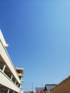 学校の外で待っていた時に、何気に見上げたら😲😲😲雲ひとつない青空でした☀️☀️☀️